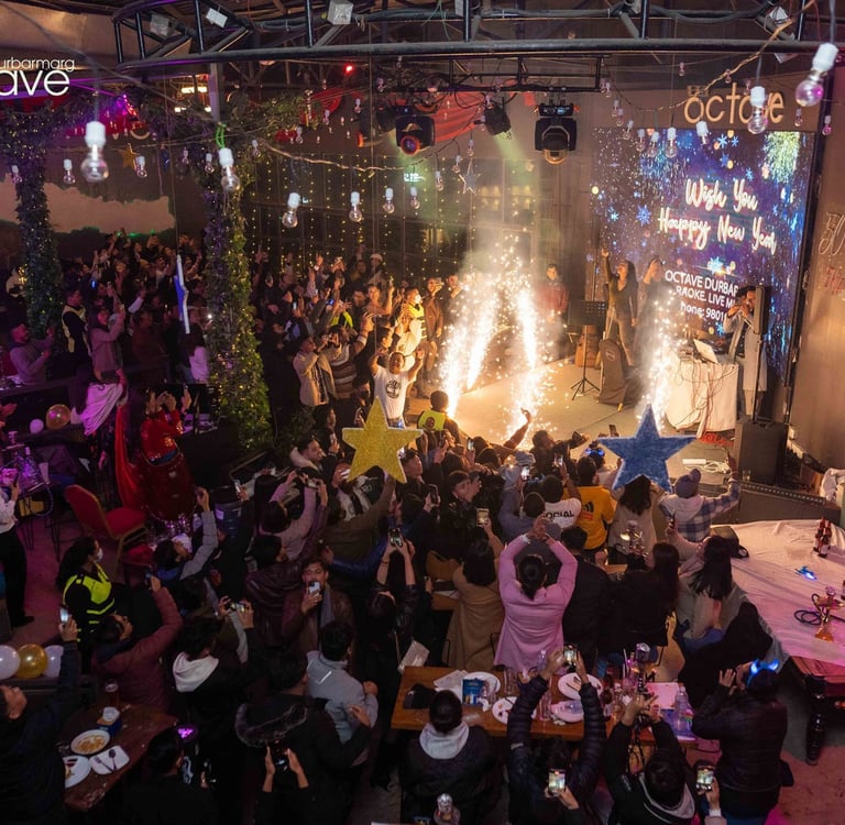 Located in the heart of Durbar Marg, Octave Beer Garden is Kathmandu’s ultimate hangout—featuring the largest collection of beer and wine in a vibrant, open-air setting. Enjoy pool, table tennis, darts, basketball, karaoke, board games, a climbing wall, and more, along with live screenings of major sporting events—from football and UFC to F1—on a massive 16ft × 9ft HD LED screen.